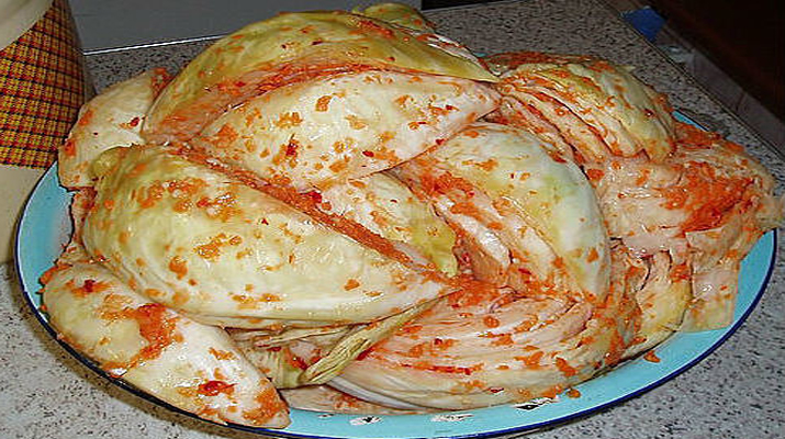 - Крупный кочан весом 3,5 кг разрезают на крупные части.