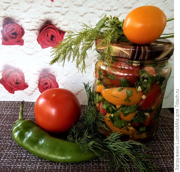 Рецепт 10: Салат из помидоров с перцем и чесноком