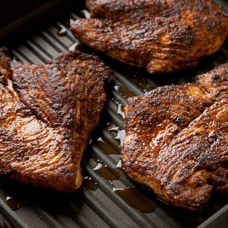 Непосредственно перед приготовлением щедро приправить 1 1/2 ч. л. соли и 1 ч. л. черного перца