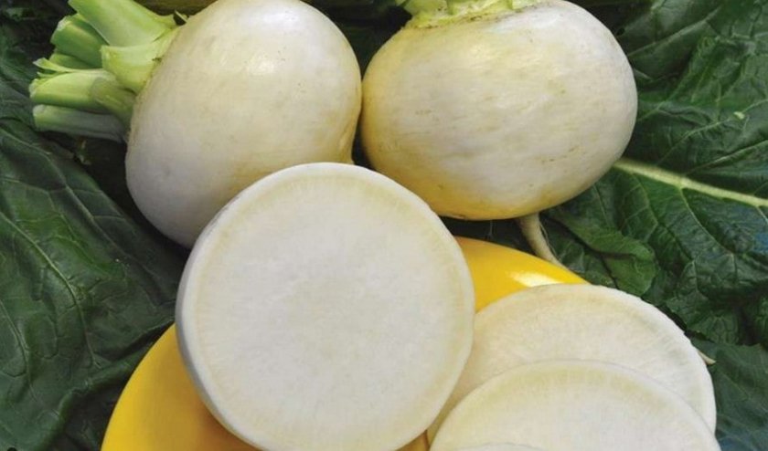 Описание. Вес – до 500 г. Репы округлые, донце – вогнутое. Цвет – белый. Их размер вдвое больше, чем у обычных сортов – репки вырастают до 12 см в диаметре. Вокруг кожицы отсутствует пробковый слой. Мякоть сочная, белого цвета, не твердеет со временем. Розетка у растения почти прижата. Листья средней длины, цвет – зеленый. Листва слегка опущена. Ценные вкусовые характеристики. Применяют в лечебном и диетическом питании. Можно варить, парить, солить, запекать.