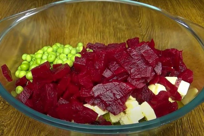 Всегда мне хотелось добавить в традиционный рецепт селедки под шубой консервированный горошек. И вот я это сделала: горошек просто идеально вписался в блюдо. Очень рекомендую попробовать и такой