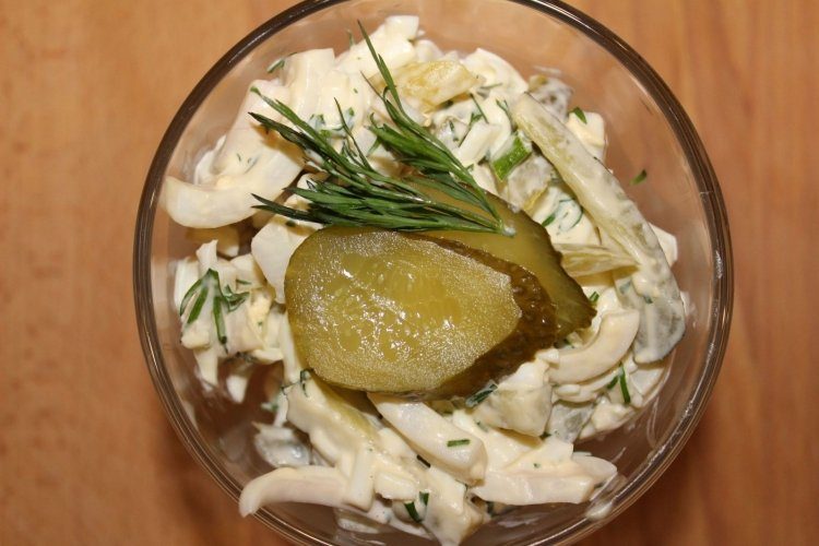 Диетический салат из кальмаров с яйцом – пошаговый рецепт приготовления с фото