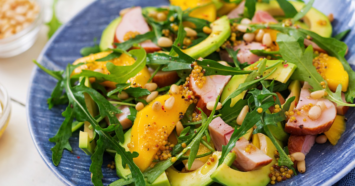 Рыбный салат с манго и овощами, пошаговый рецепт на 1090 ккал, фото, ингредиенты