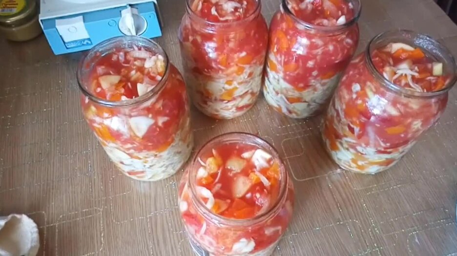 Консервированные салаты подразделяются на томатные, капустные, салаты из свёклы, баклажанов, огурцов или перца и ассорти, и почти одинаковы по способу приготовления, разве что количество компонентов различается да названия радуют.