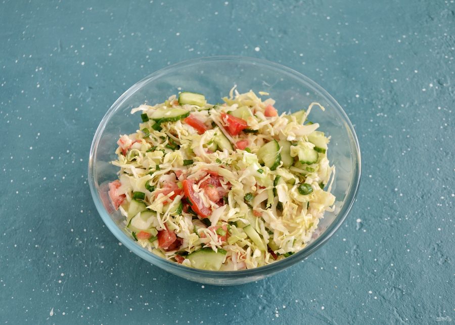 Вот есть такие рецепты, которые актуальны всегда и в любом рационе. Витаминный легкий овощной салат из капусты, огурцов и помидоров — отличный пример такого блюда — дети, взрослые, худеющие, набирающие вес, вегетарианцы и веганы, постящиеся, даже те, кто на кето, с удовольствием едят такой салатик. А так как мы с вами пп-шники, то и готовить этот салат будем правильно. Такой рецепт приготовления даст возможность не только порадовать своего внутреннего гурмана, но и получить максимум пользы от овощей и зелени.