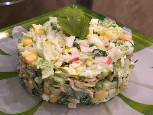 Еще один вкусное блюдо – «Пекинский» салат крабовыми палочками и пекинской капустой.