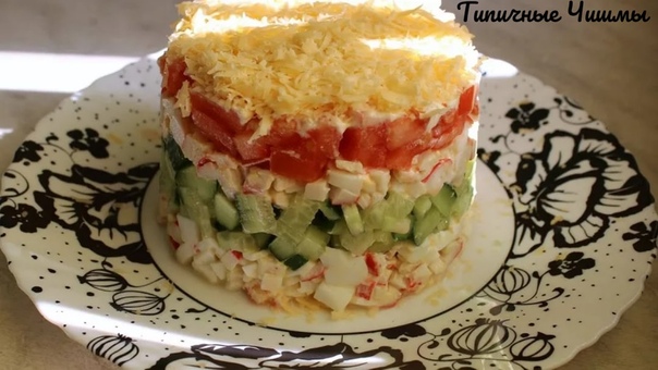 Смотрится очень красочно и аппетитно. Попробуйте этим летом освежающий салат из огурцов и крабовых палочек.