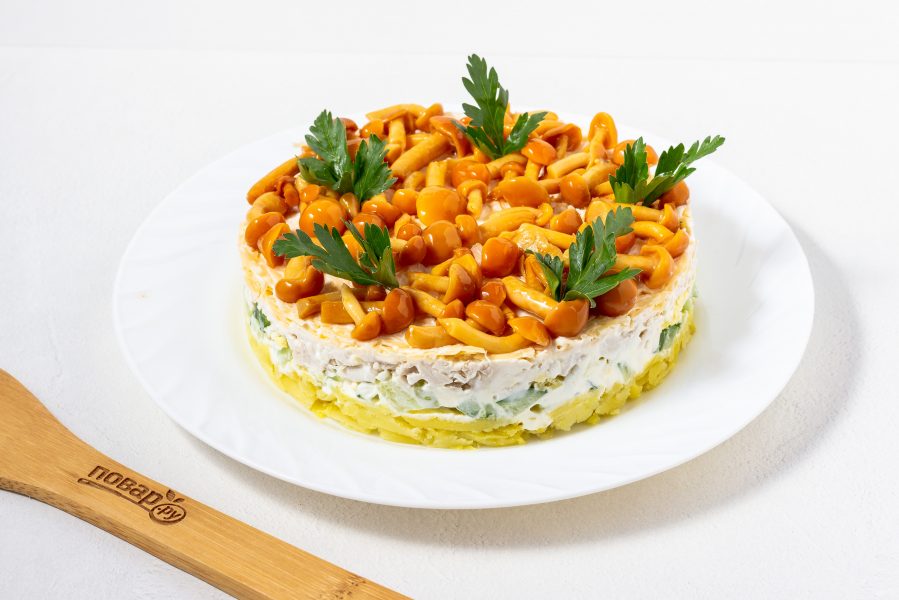 Слоеный салат Нежность с курицей пошаговый рецепт приготовления с фото