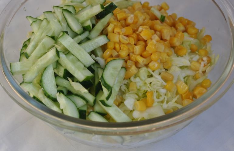 Рецепт приготовления салата из свежей капусты с огурцами по шагам