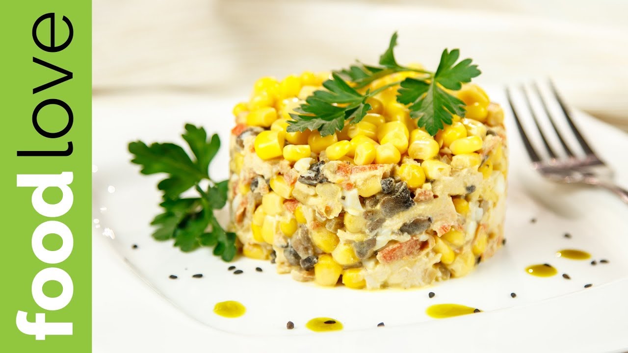 👌 Очень вкусный слоеный салат из курицы, ананасов и кукурузы, рецепты с фото