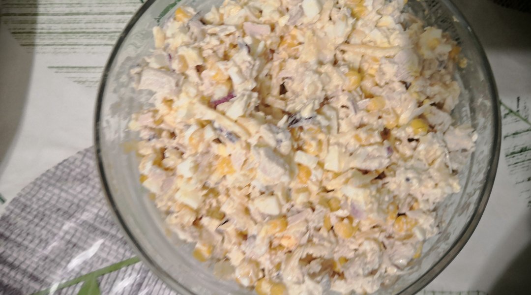 Салат с куриной грудкой и кукурузой “Пальчики оближешь”