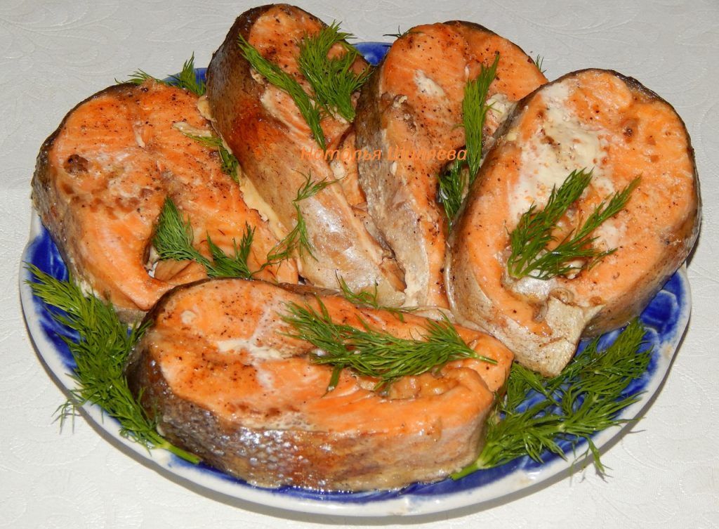 Жареные стейки лосося на сковороде