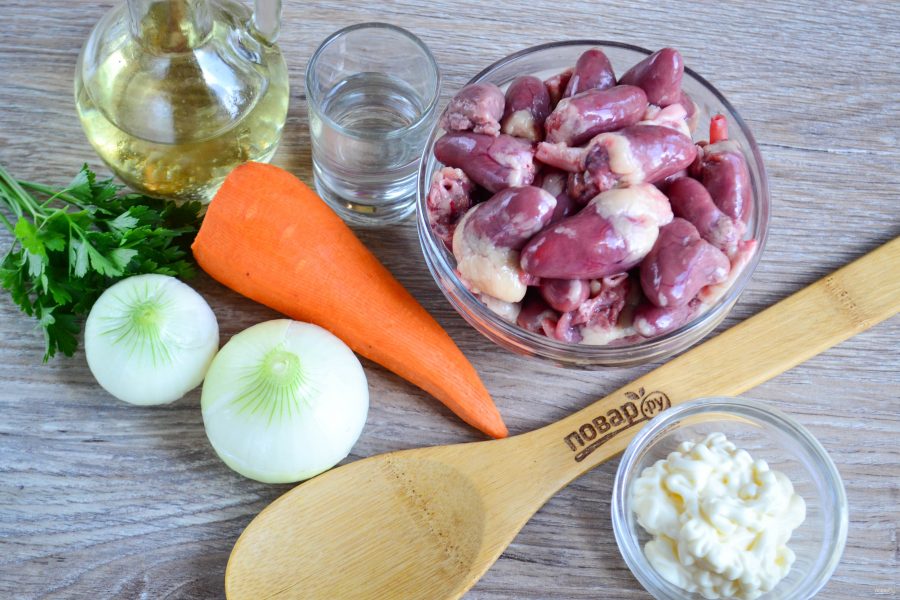 Сердечки моем и очищаем от жира, пленок и трубочек.