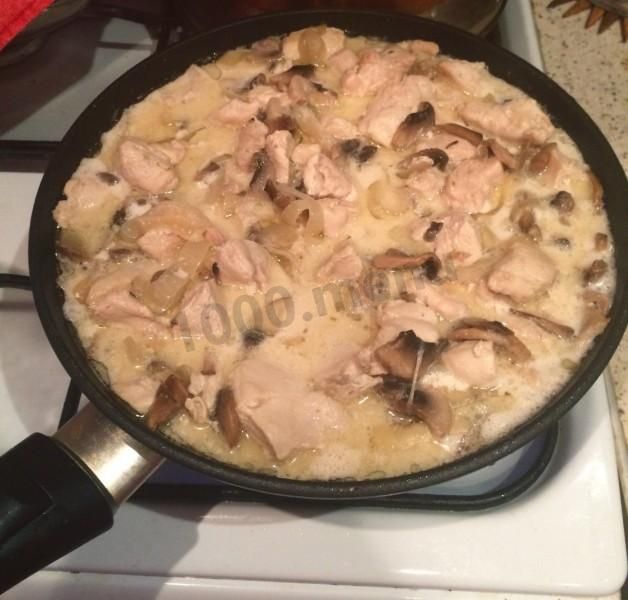 курица с грибами в сливочном соусе,курица с грибами в сметане,курица с грибами в сметанном соусе,рецепт курицы с грибами,курица с грибами и луком 5 55