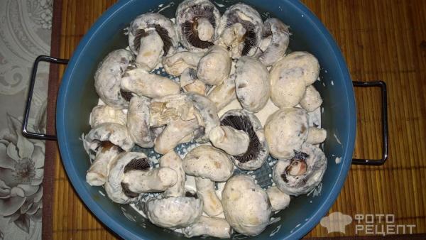 Перед началом приготовления мы помоем тщательно шампиньоны под проточной водой. Очищать от кожуры ненужно.