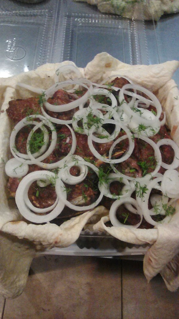 Хичин с мясом 100 рублей, шашлык 300 рублей за шпажку (грамм 300-400 мякоти баранины).К хычину также кладут домашнюю сметану.