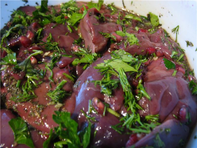 Перед процессом готовки убирают жировые прожилки. Прежде чем нарезать куриные потрошка на ломтики, их осматривают, чтобы убедиться в отсутствии желчи. Позеленевшие места необходимо срезать, иначе в готовом блюде будет присутствовать горечь.