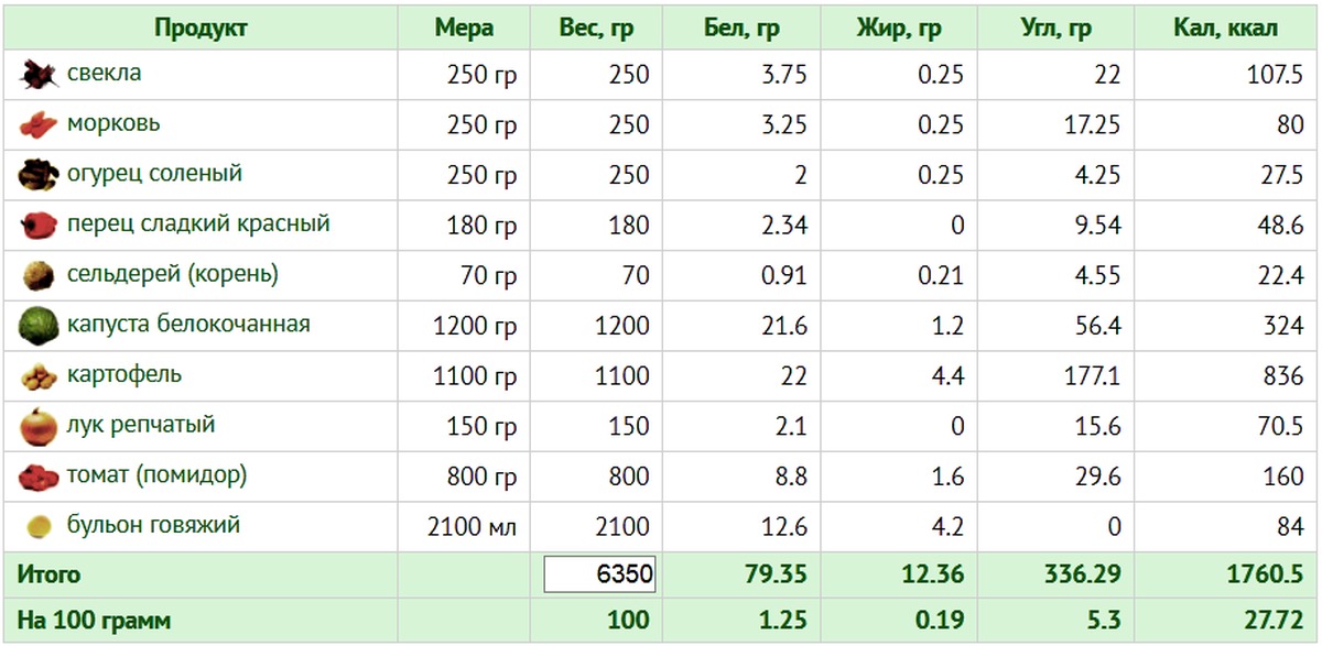 Борщ (в рецептуру которого традиционно входит морковь) содержит 100 ккал.