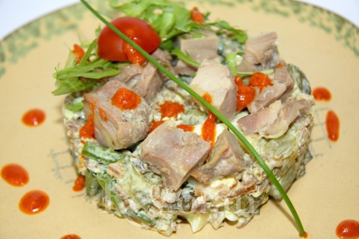 Благодаря своей губчатой структуре субпродукт отлично впитывает в себя жидкость. Поэтому добавив его в салат с ингредиентами склонными к выделению жидкости, можно избежать лишней водянистости блюда.