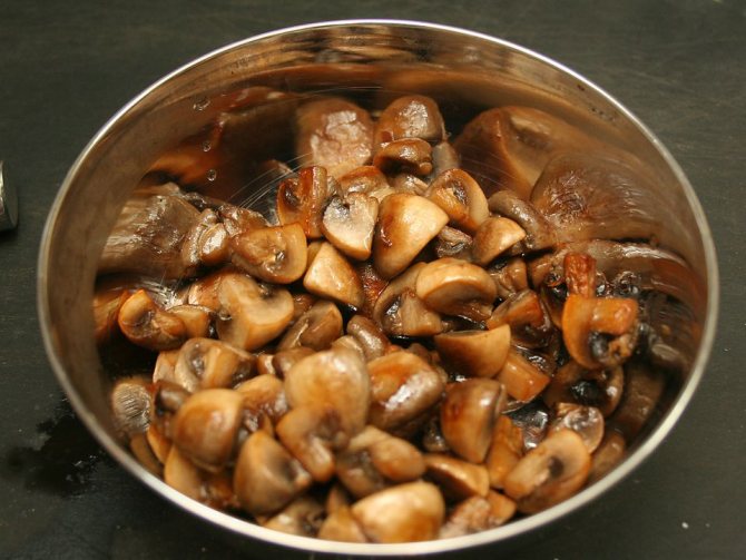 - Шампиньоны можно не варить, но если решили подстраховаться, то им хватит пяти минут.
