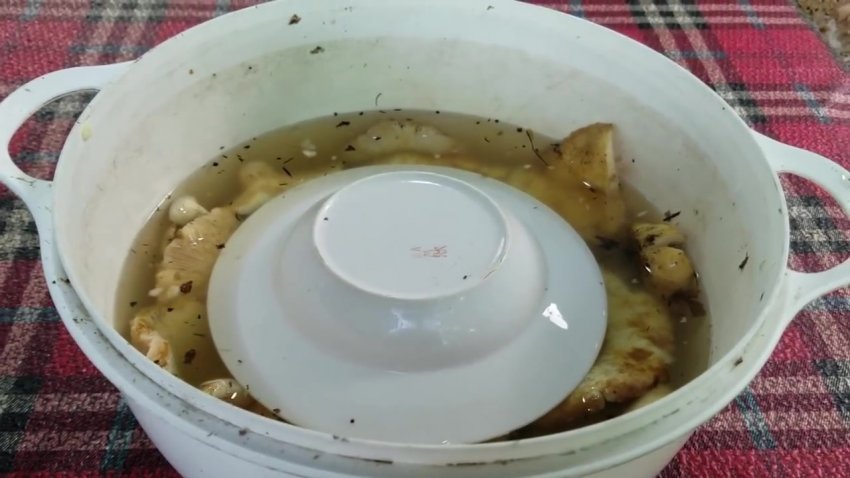 Уберите емкость с грибами на 3 дня в темное прохладное помещение. - Подготовьте банки и крышки.