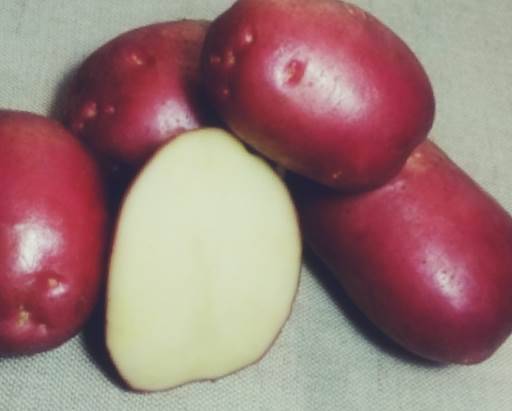 Довольно крупные, овально-длинные клубни одинакового размера с приятной красной кожицей, мелкими глазками и желтой мякотью