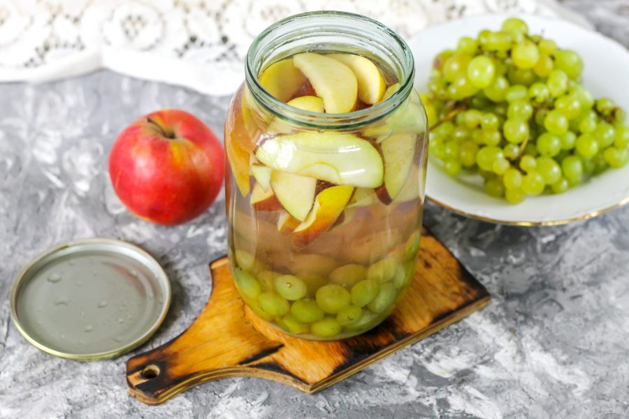 Для приготовления этого напитка необходимы ингредиенты: виноград — 2 кг, лимон — 1 штука, сахарный песок — 6 стаканов, яблоки — 2 кг, вода — 3 л. После подготовки ингредиентов следовать инструкции: