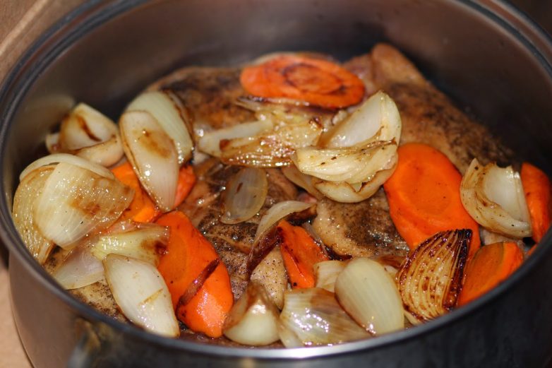 - Приготовить курицу и картофель. Накройте кастрюлю и готовьте курицу и картофель в течение 3 часов при высокой температуре или 6 часов при низкой температуре.