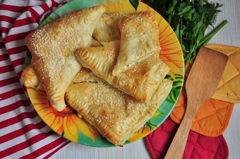 При желании в центре треугольников можно вырезать отверстие и залить начинку. 1 чайная ложка мясной бульон. Но чтобы он не испарялся в процессе приготовления, обязательно прикройте отверстие кусочком теста. Так что пироги получаются безумно сочные и вкусные;