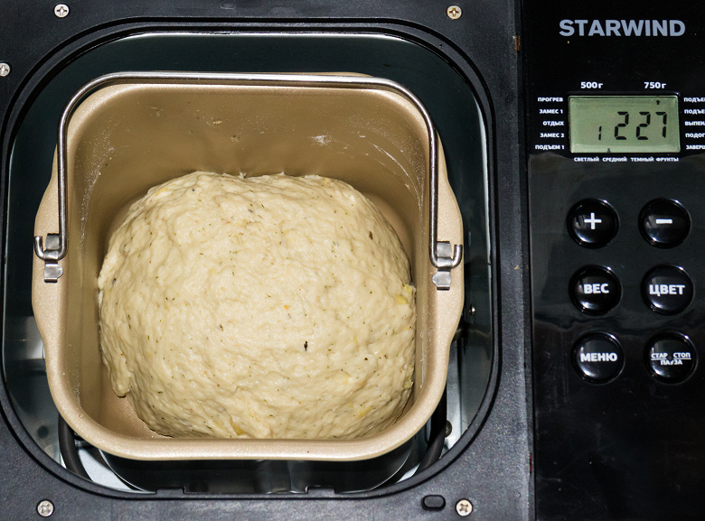 Добавить сухое картофельное пюре. Перемешать. Можно еще добавить жареный лук, он придаст хлебу оригинальный и необычный вкус. Хлеб с луком в мультиварке