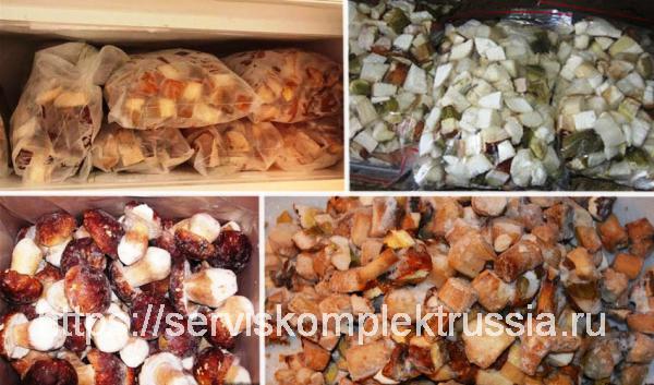 Хранение продуктов в морозильной камере позволяет сохранить урожай на длительное время, и круглый год использовать для приготовления различных блюд. Стоит учесть, что продукт не подлежит повторной заморозке, поэтому замораживать его нужно небольшими порциями. Условия хранения грибов зависят от метода их предварительной обработки.