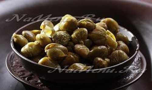 Каперс – еще не распустившиеся бутоны колючего кустарника, который называется каперсник. Само название бутончиков – каперс, можно перевести «страсть» и «желание».