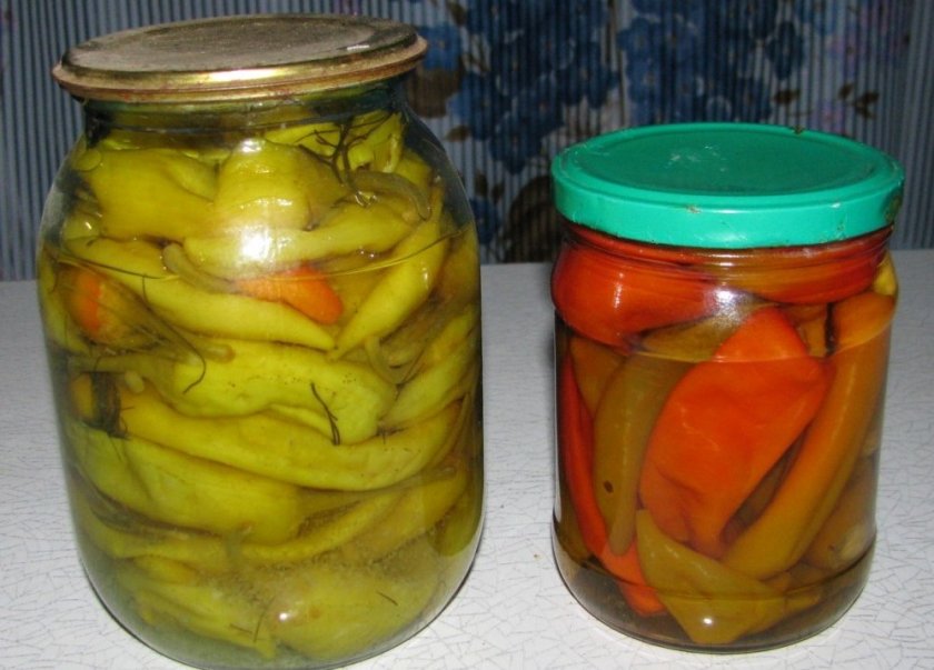- Далее добавляется проваренный перец, который заливается маринадом, а сама банка закатывается.