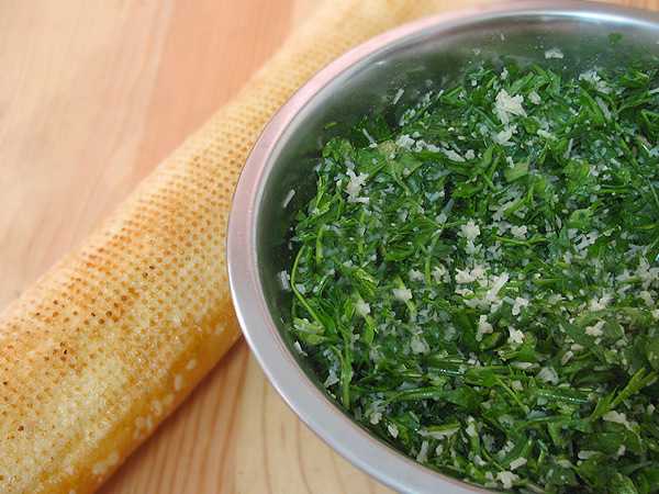 Предварительно свежую зелень промывают, освобождают от мусора и отрезают слишком длинные стебли с корнями.