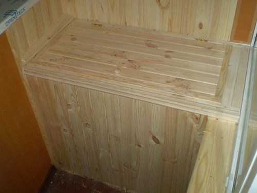 - Сколотить ящик из дерева (досок, вагонки, реек и т.д.). При этом наличие щелей между дощечками будет выполнять роль вентиляции, но это подходит лишь для тщательно утепленных и гидроизолированных балконов;