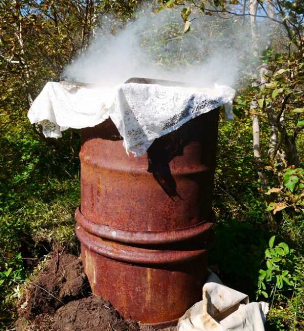 Важным моментом является корректировка температурного режима. Она достигается путём своевременного разгребания углей либо добавления дров. Немаловажна дистанция ведра от источника огня. Определить температуру можно при помощи капли воды. Попадая на крышку, капля начинает мгновенно испаряться и шипеть: огонь следует уменьшить. Испарение без кипения свидетельствует о нормальном течении процесса.