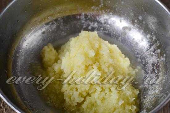 - Чеснок пропустите через чеснокодавку или измельчите ножом.
