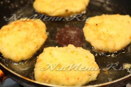 - Обжарьте котлеты в растительном масле. Переворачивайте аккуратно лопаткой, чтобы котлеты не развалились.