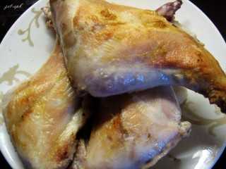 - Тушку вымываю и разрезаю на кусочки. Мясо посыпаю черным перцем, солю и оставляю на полчаса мариноваться. После все хорошо обжариваю на сковороде.