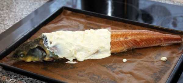 7. Отправляем в разогретую до 180° С духовку до золотистой корочки. У меня на это ушло около 50 минут (рыбка крупная).