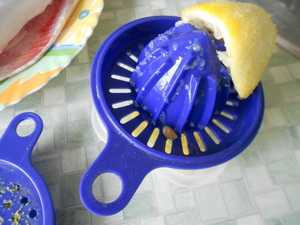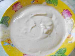 2. Готовим соус для маринования: сметану смешиваем с горчицей, лимонным соком, лимонной цедрой, солим, перчим.