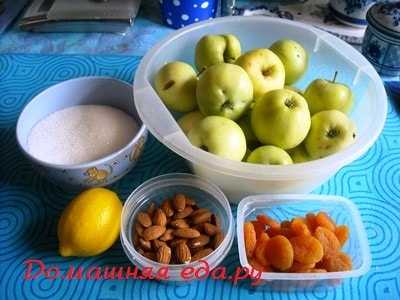 Понадобится: 1,5 кг яблок, по стакану воды и кураги, 1,5 кг сахара, 1 большой лимон.