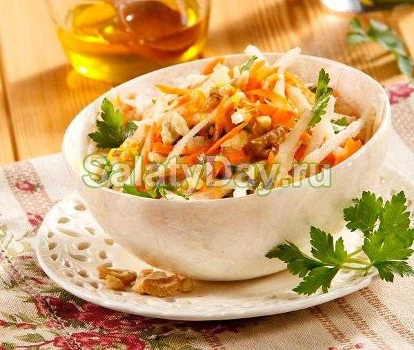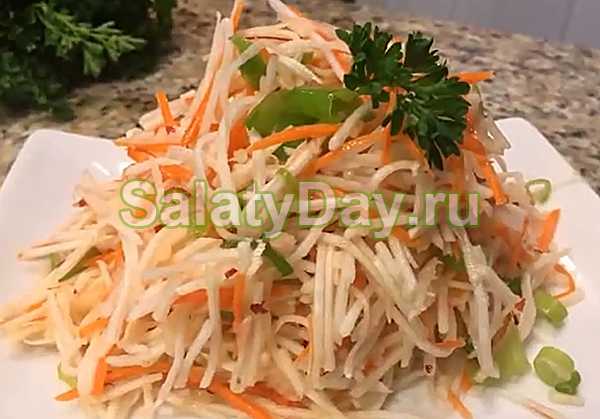 Дайкон можно заменить обычной редькой, репой, топинамбуром.Слоеный салат с курицей