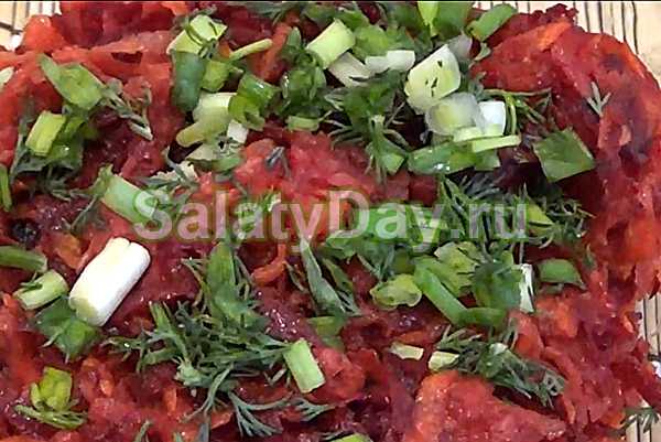 Этот вариант немного его напоминает, но готовится без майонеза, колбасы. То есть вполне лёгкий и диетический, при этом тоже имеет острый пикантный вкус.