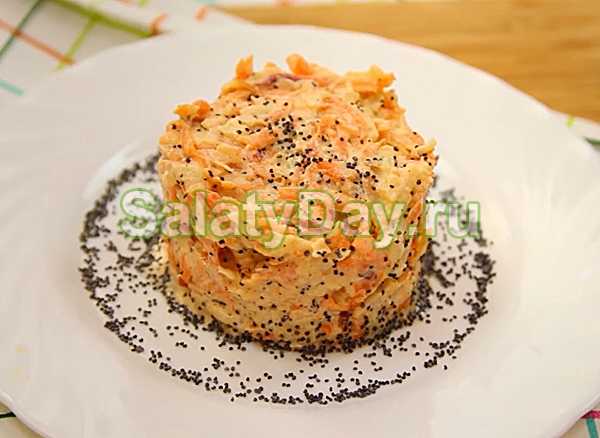 Салат «Кудрявый» с морковкой, яблоком и крабовыми палочками