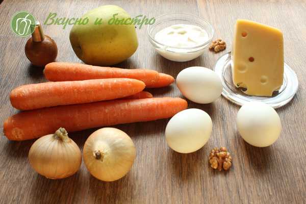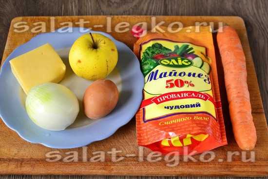 Чтобы приготовить салат с морковкой, яблоком и сметаной, возьмем такие продукты: