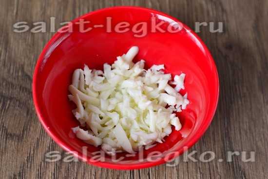 На приготовление салата уходит совсем немного времени, он простой и обязательно получится вкусным даже у начинающей хозяйки. Действия: