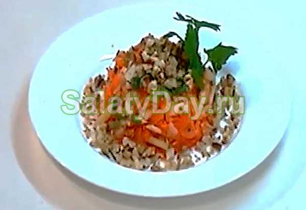 Салат выкладывать в формочку, потом поставить в холодильник, чтобы он хорошо пропитался. Через часик-два можно подавать к столу.