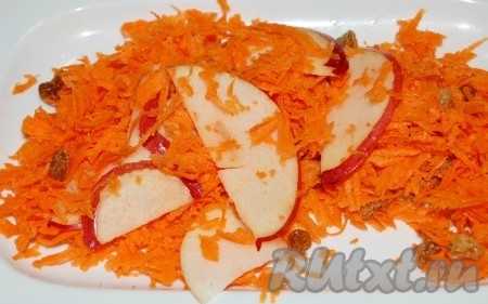 Салат желательно подавать к столу сразу после готовки, иначе яблоко начнет темнеть и утратит свою свежесть.