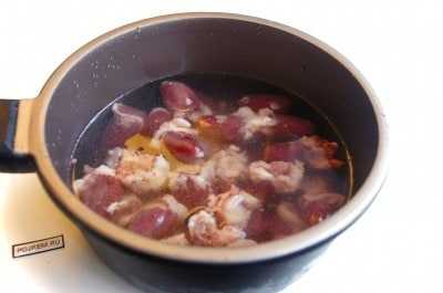 Для начала тщательно промываем сердечки и оставляем отмокать для того, чтобы вышли остатки свернувшейся крови.